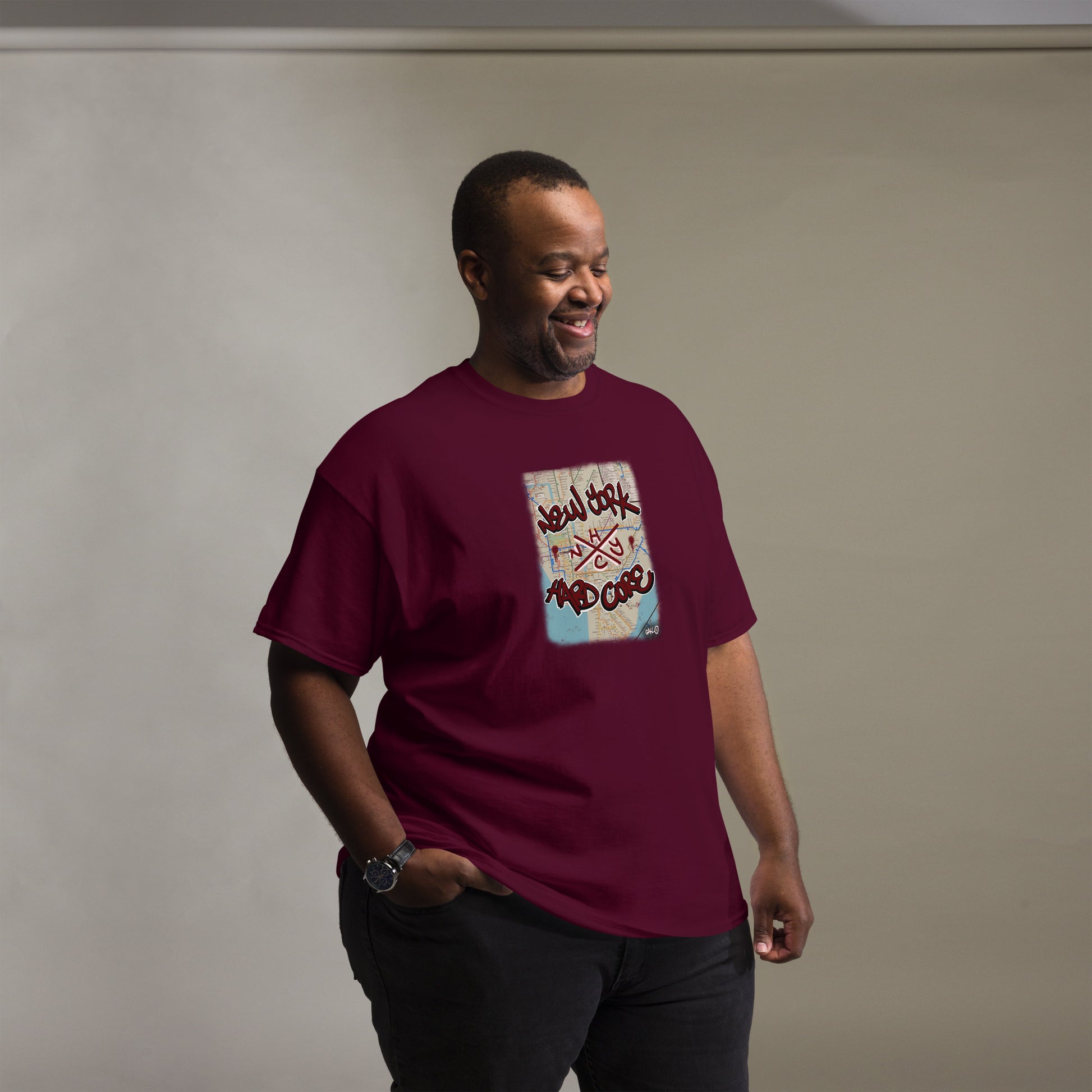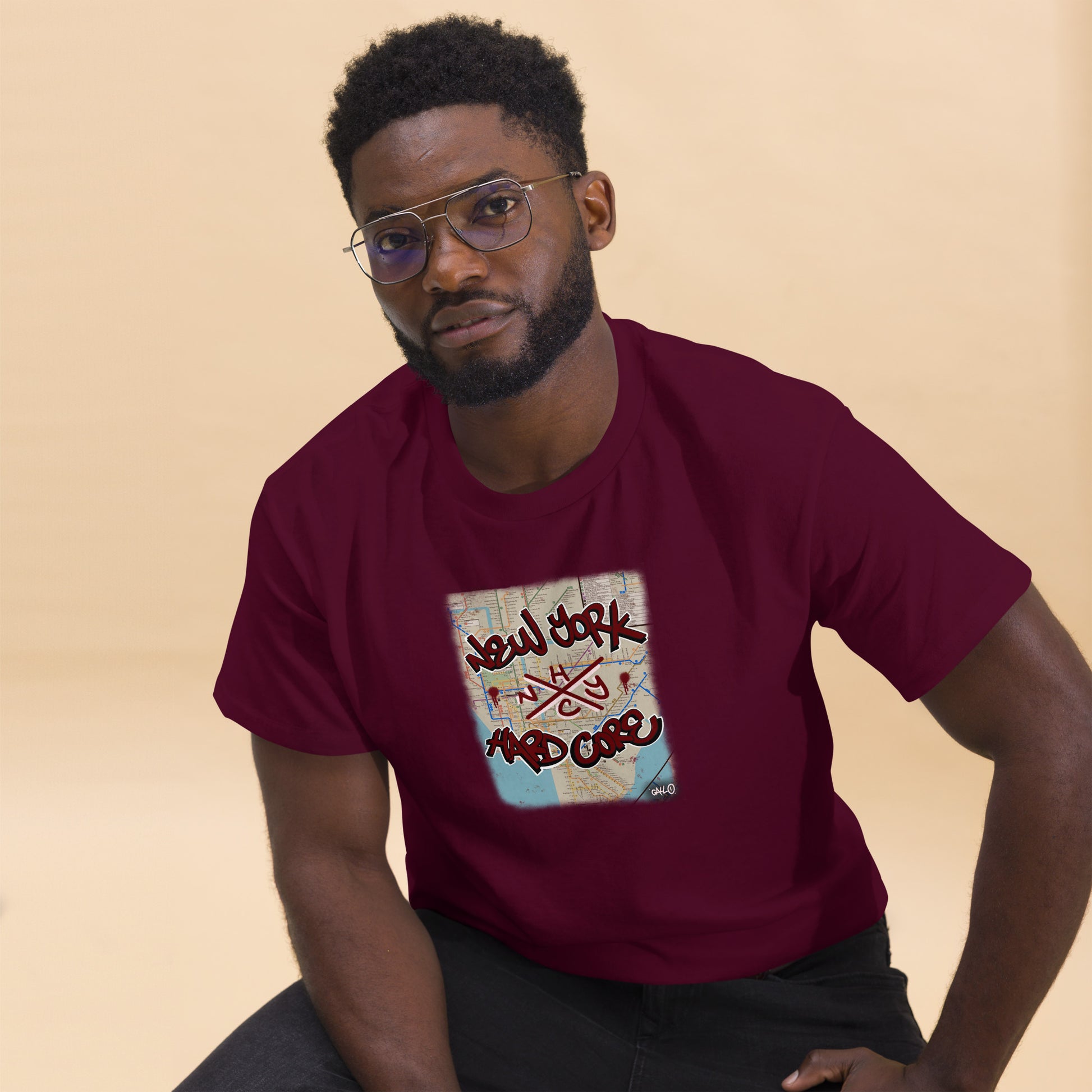 The 100% cotton men's classic tee will help you land a more structured look. It sits nicely, maintains sharp lines around the edges, and goes perfectly with layered streetwear outfits. Plus, it's extra trendy now!