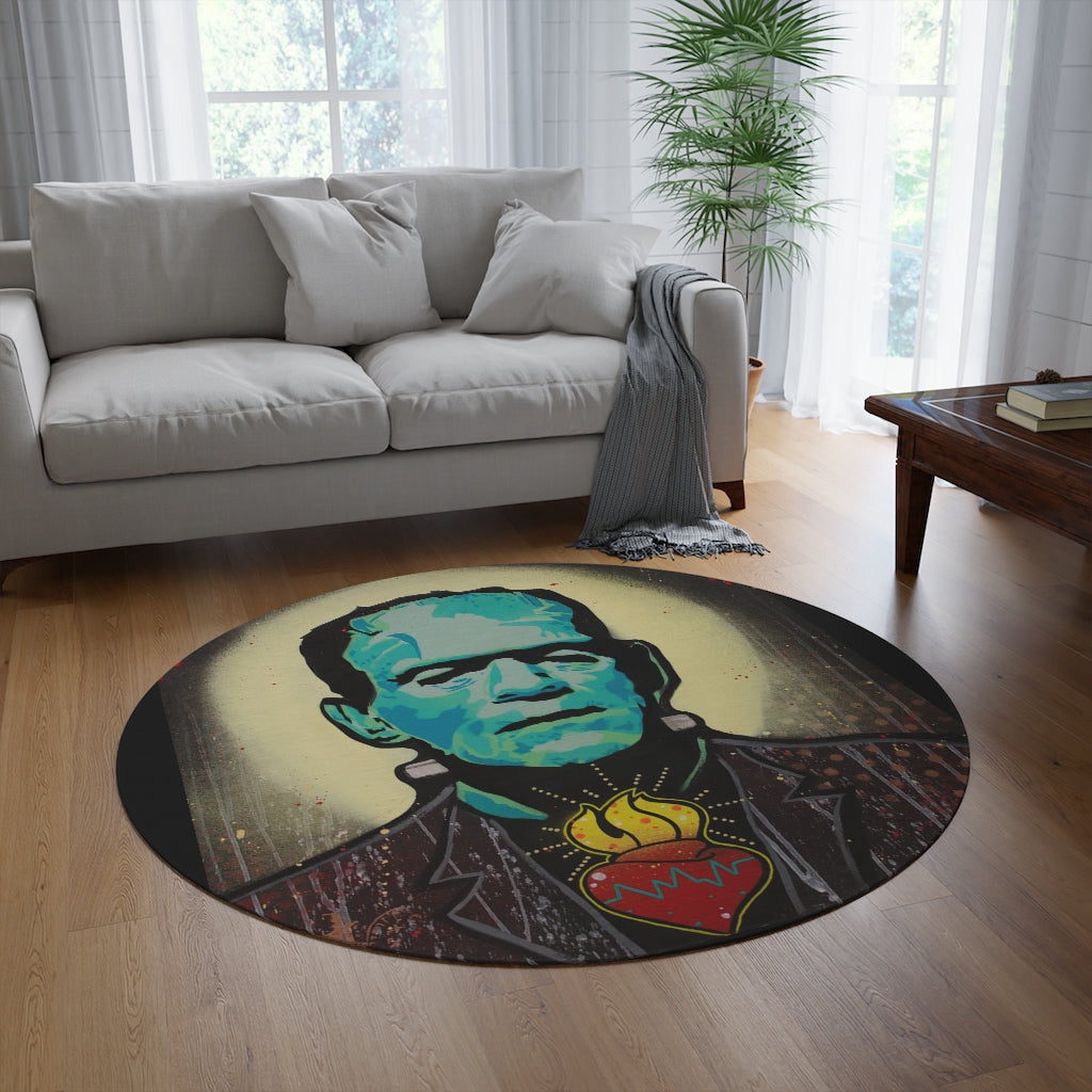Decorative rugs with fun, bright designs have made a huge comeback. Create a stunning design with graphics or funky characters, and print them on this round 100% polyester chenille rug in picture-perfect quality. It features a coated backing and hemmed edges for durability.