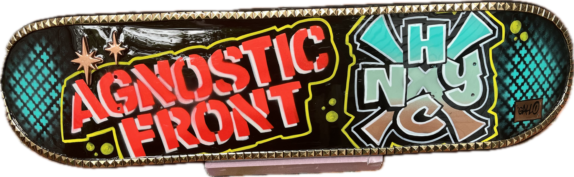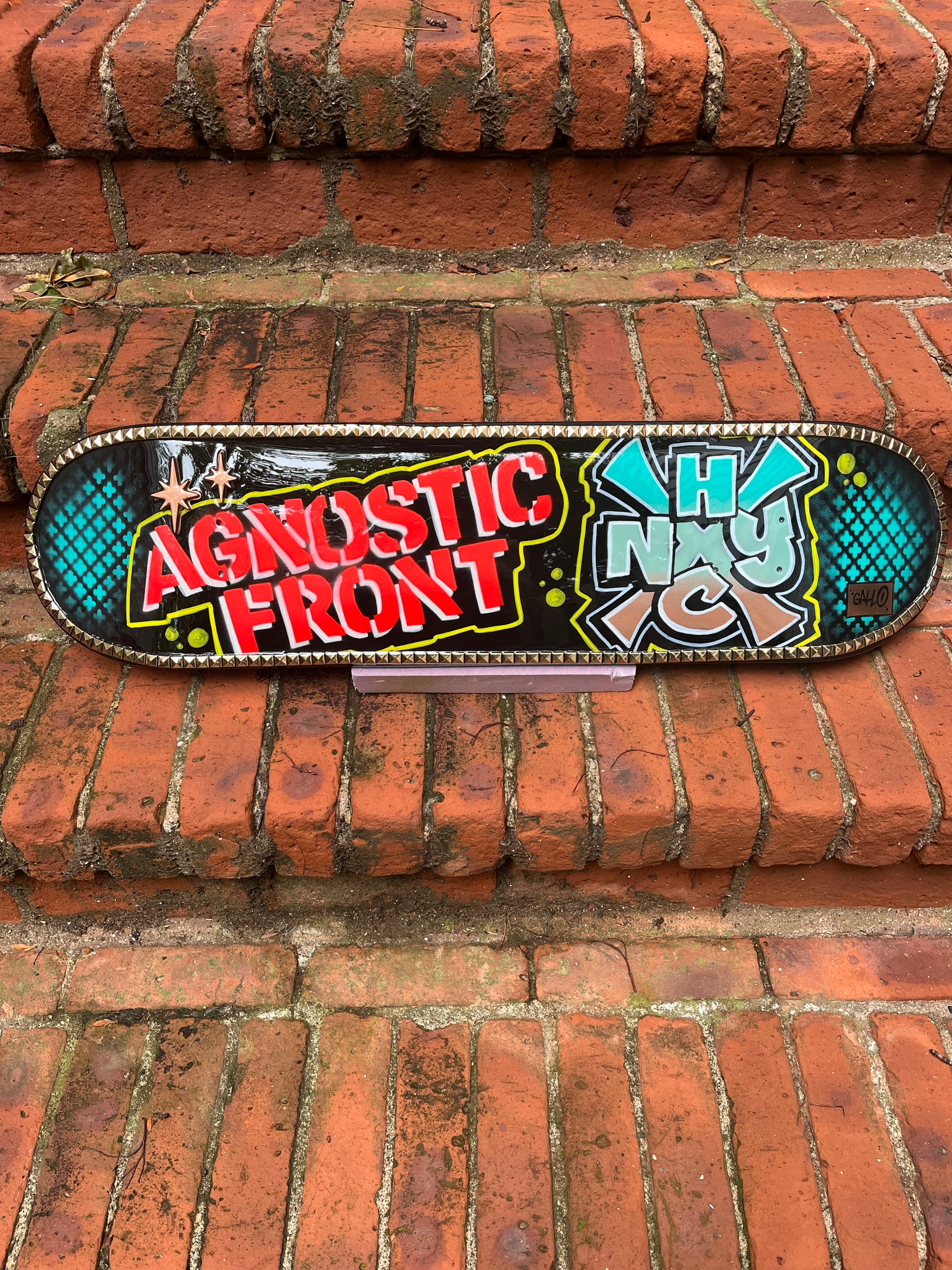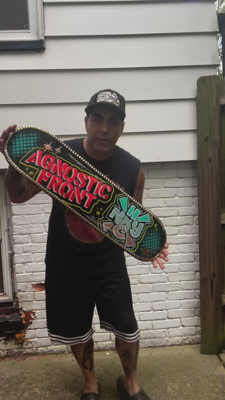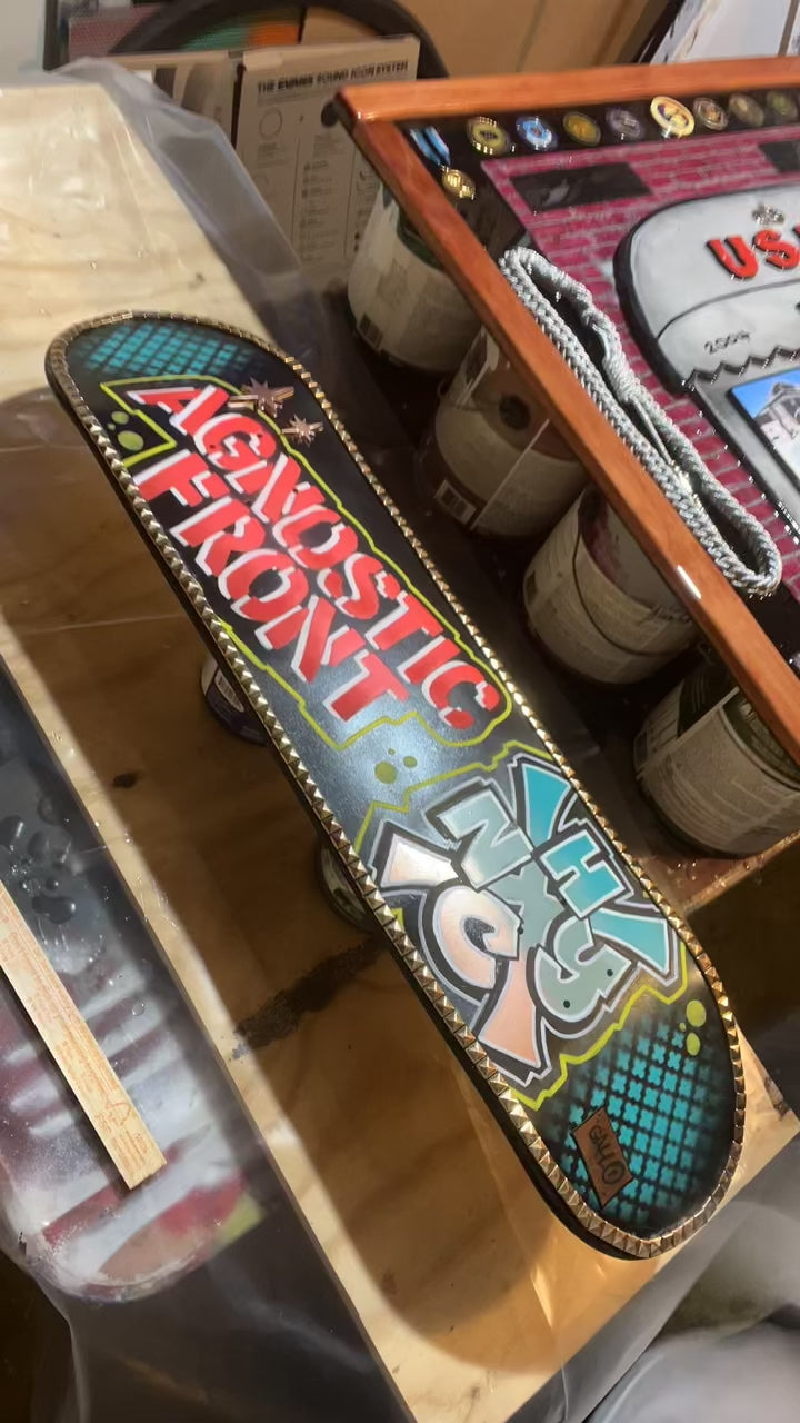 1- AGNOSTIC FRONT Studded Skateboard Deck ( hand signed )